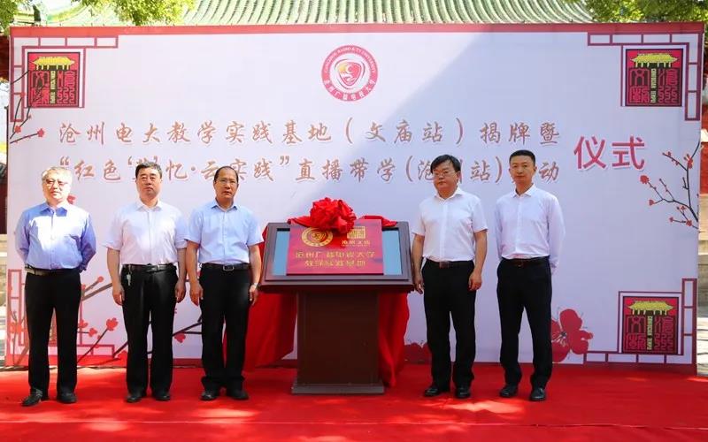 6月4日上午,滄州電大教學(xué)實(shí)踐基地(文廟站)揭牌儀式在滄州文廟舉行,“紅色“冀”憶·云實(shí)踐”直播帶學(xué)(滄州站)活動(dòng)同時(shí)啟動(dòng)。滄州電大黨委副書記、校長崔學(xué)強(qiáng),滄州市文化廣電和旅游局黨組成員、副局長翟成剛出席儀式并為教學(xué)實(shí)踐基地揭牌,翟成剛副局長和滄州電大黨委委員、副校長劉俊民分別在儀式上致辭,滄州電大教研室主任姚小林主持儀式。