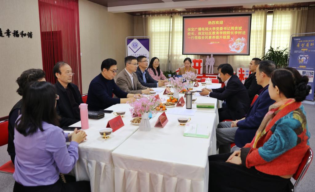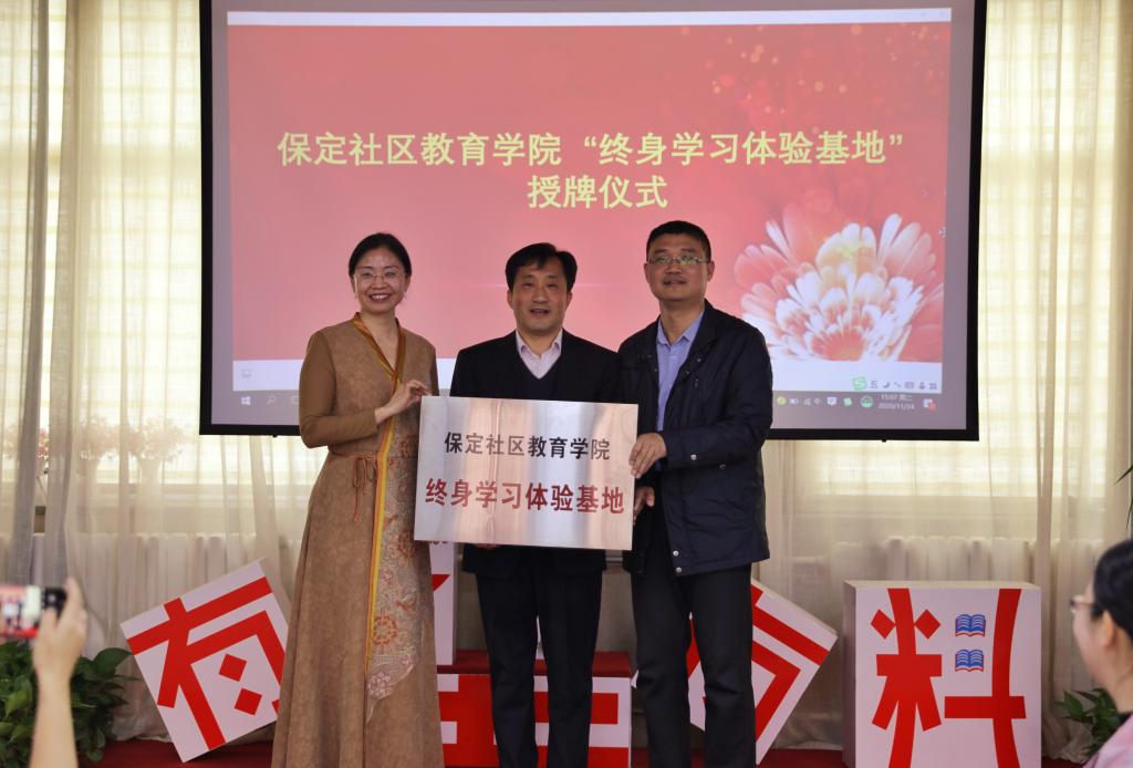 11月24日,保定社區教育學院終身學習體驗基地在“全民素養提升聯盟”掛牌。保定電大黨委書記周貴斌,校長、社區教育學院院長李樹進,副校長、社區教育學院副院長趙國華及“全民素養提升聯盟”發起人等出席授牌儀式。李樹進為“全民素養提升聯盟”授牌。