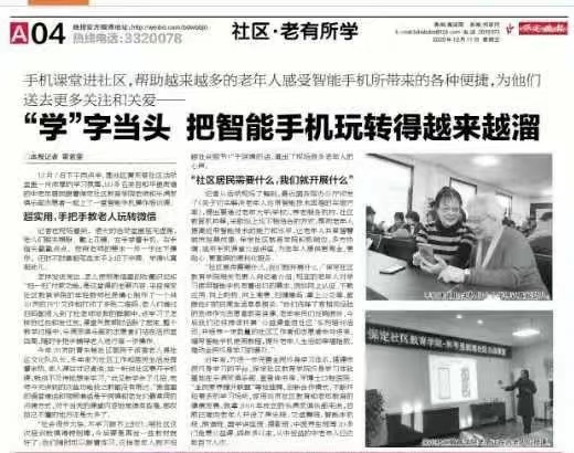 “社區居民需要什么,我們就開展什么。”保定社區教育學院相關負責人向記者介紹,現在的老年人對學習使用智能手機有著迫切的需求,例如網上認證、下載應用、網上購物、網上繳費、掃健康碼、掌上公交等,都跟他們的日常生活息息相關。“我們選擇了有相關經驗的老師作為志愿者前來講課,老年學員們反響很好,今后我們還將持續開展‘公益課堂進社區’系列培訓活動,并培養一定數量的社區工作者和志愿者參與進來,編寫智能手機使用教程,提升老年人生活的幸福指數,推動全民終身學習的普及。”