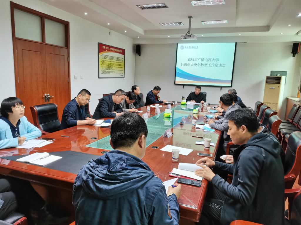 為推進全市電大系統轉型發展,加快縣級電大更名轉型工作,4月30日上午,廊坊電大召開縣級電大更名轉型工作座談會。黨委書記、校長李河均、黨委委員、副校長李琥、黨委委員、副校長姚東升出席會議,各縣級電大負責人及縣級電大更名轉型工作領導小組成員參加了會議。會議由李河均主持。