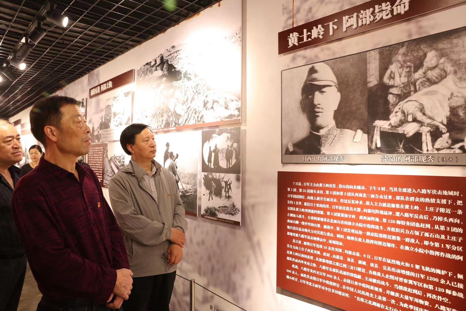 黃土嶺戰役是八路軍繼平型關大捷后的又一次重大勝利,共殲滅日軍900余人,日軍“名將之花”阿部規秀被擊斃,繳獲大量軍用物資,沉重打擊了侵華日軍的囂張氣焰,極大地鼓舞了我軍的抗日士氣。在黃土嶺戰役遺址,講解員通過戰役示意圖為大家詳細描述了戰役背景、經過以及取得的輝煌戰果。在黃土嶺戰役紀念碑前,全體黨員面向黨旗莊嚴舉起右手,重溫入黨誓詞。隨后,大家走進紀念館,參觀戰役歷史資料。